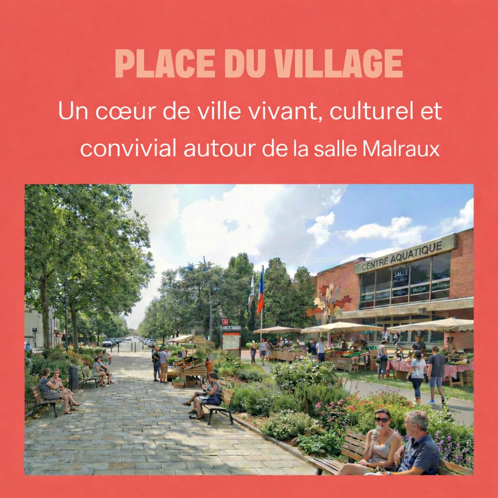 Une ville harmonieuse est une ville où l’on aime se retrouver. Où les espaces publics invitent à la rencontre, au commerce, à la détente. À Lambersart, nous voulons créer ce lieu fédérateur qui manque aujourd’hui : une véritable place de village, conviviale et vivante, aménagée devant la salle Malraux.